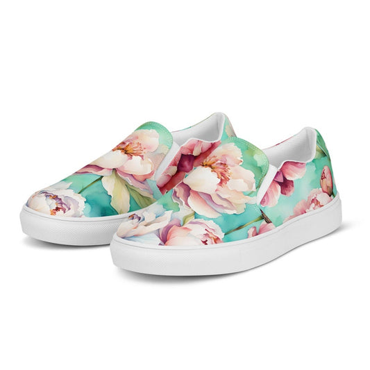 Watercolor Peony Blossom Women’s Slip-on Canvas Shoes