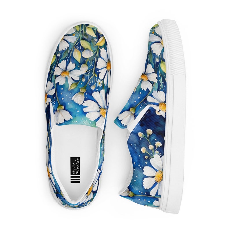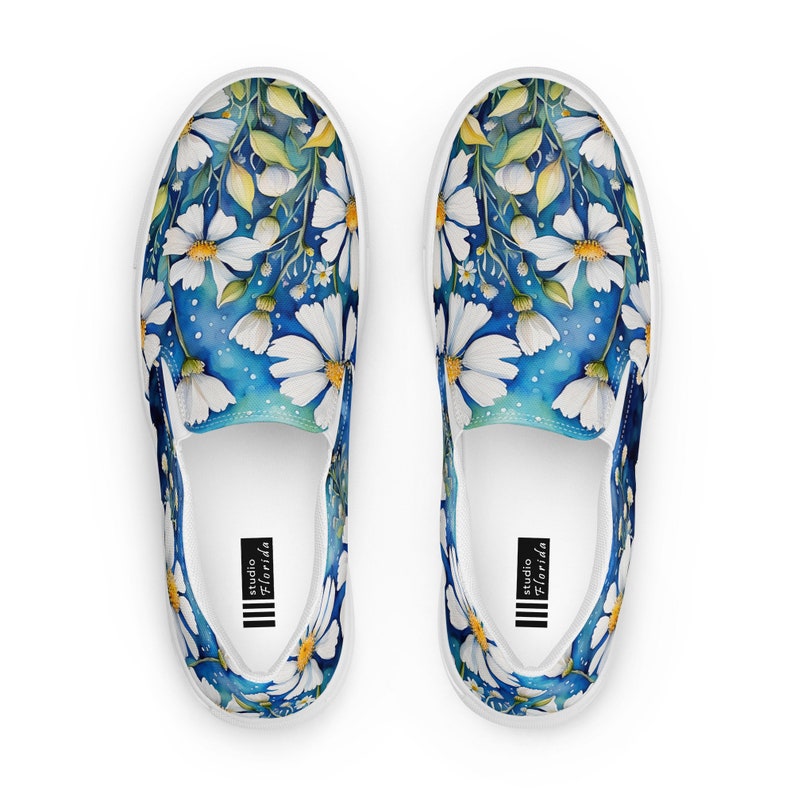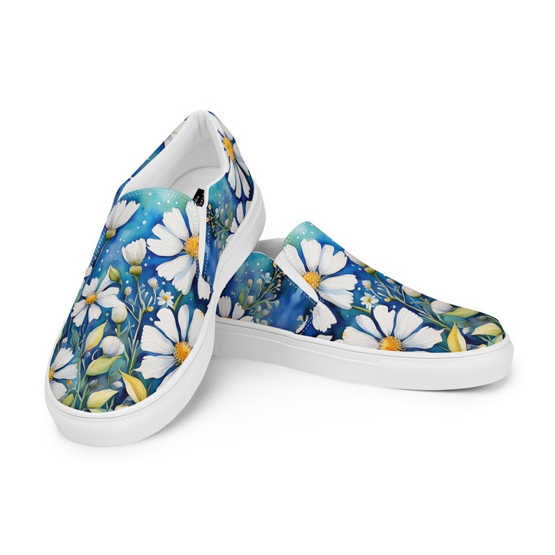 Watercolor daisies women's slip-on shoes.